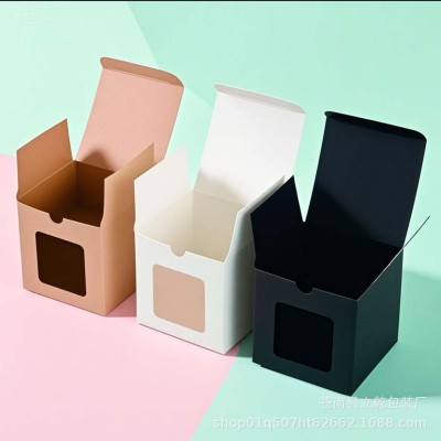 Cube kraft paper window gift box small toy doll cup packaging box