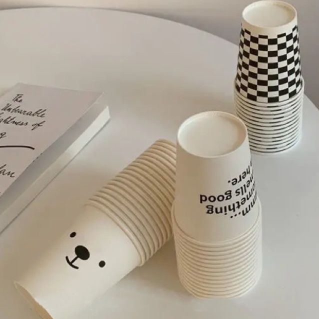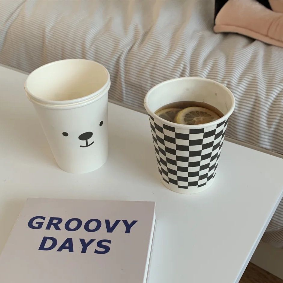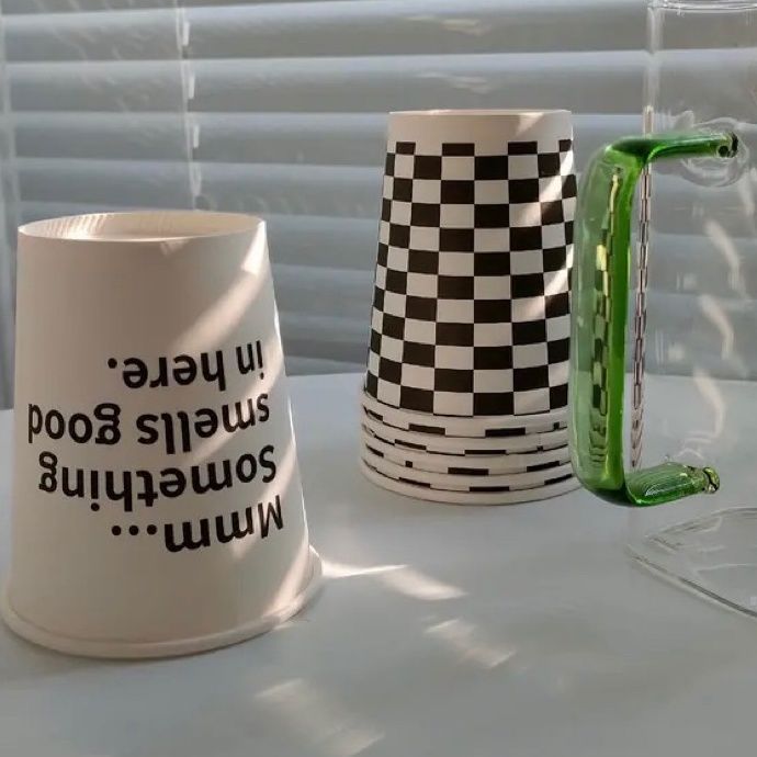 Black and white checkerboard disposable paper cup cute household water cup checkered thickened paper cup